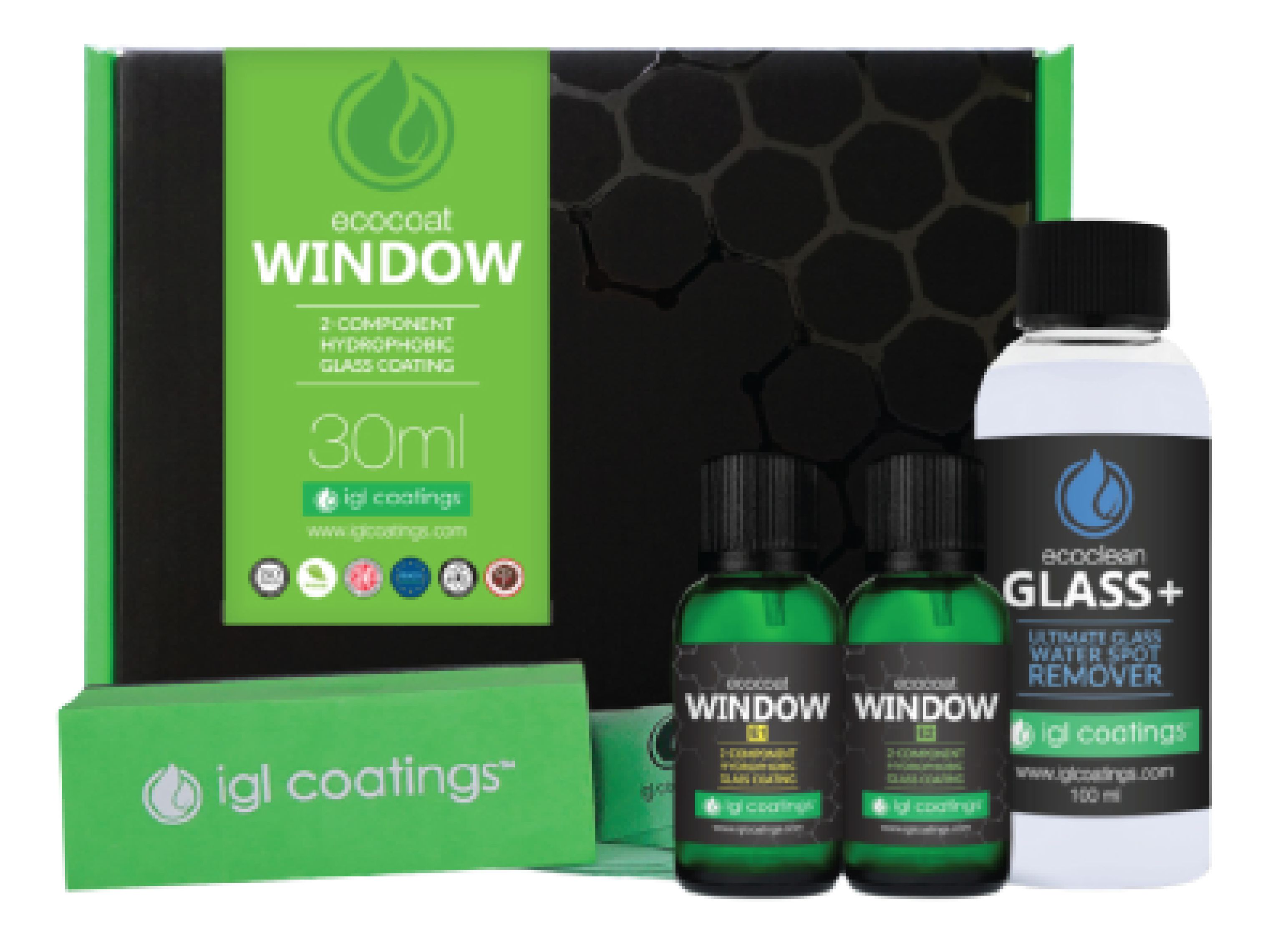 Ecoclean Glass+ remove os contaminantes existentes e até mesmo os revestimentos existentes para preparar a superfície para o revestimento de vidro. A aplicação do Ecocoat Window cria uma superfície super lisa, transparente e repelente à água (hidrofóbica), perfeita para uma limpeza fácil e uma elevada visibilidade à chuva.